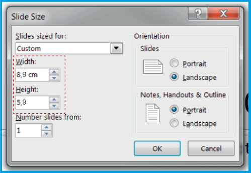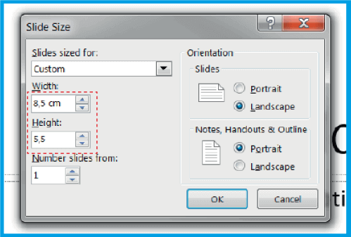 .Stellen Sie sicher, dass Sie der Höhe und Breite Ihres Dokuments 4 mm (0,4 cm) hinzufügen. Im Fall der 8,5 x 5,5 cm großen Visitenkarte legen Sie 8,9 x 5,9 cm fest.