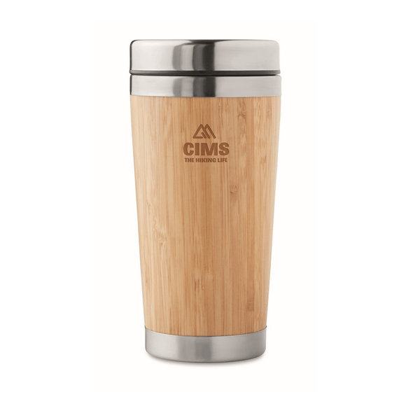 Doppelwandiger Reisebecher aus Edelstahl/Bambus RODEODRIVE+ Bedrucken